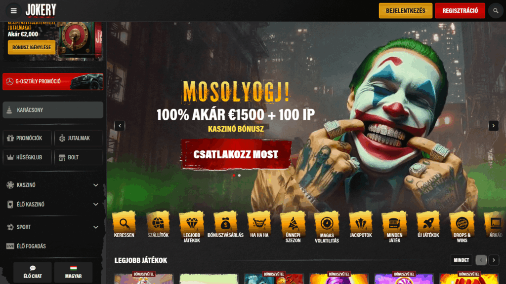A dizájn a híres Joker karakter stílusát idézi – kicsit provokatív, de mindenképp emlékezetes. A sportfogadásokon kívül egy több mint 4000 játékot kínáló kaszinó is elérhető, van e-sport részleg, valamint egy bónuszbolt is. Ebben az áttekintésben őszintén leírom, mi működik jól, és mi az, amin még van mit csiszolni.