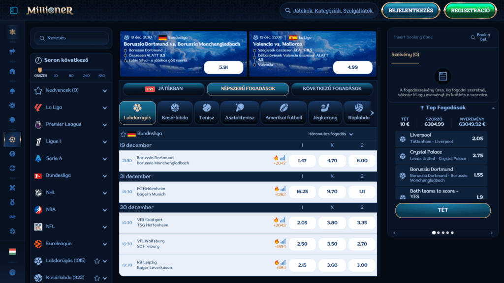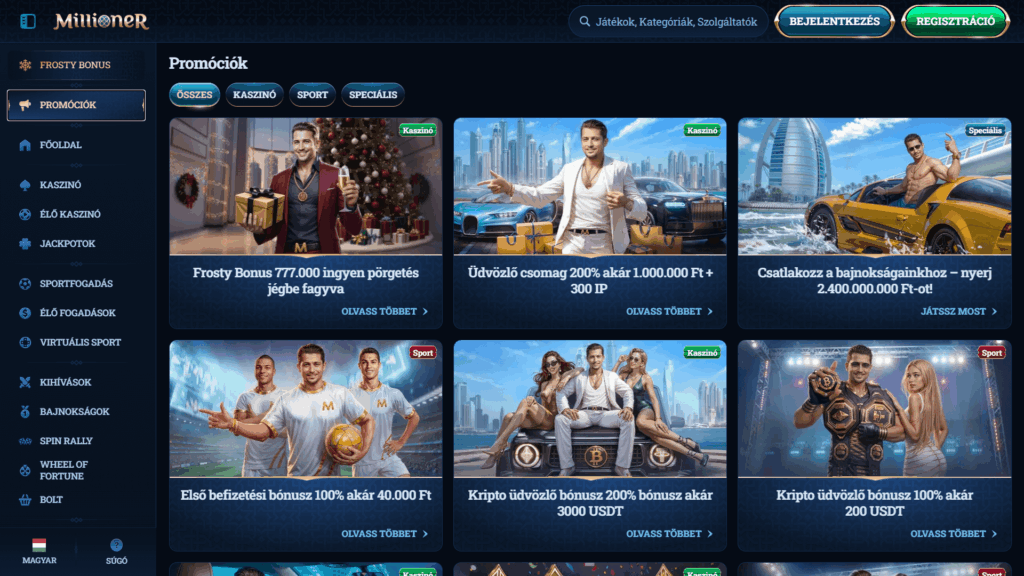 A magyar játékosok számára elérhető számos külföldi bukméker közül a Millioner nem elsősorban a sportfogadási kínálat mélységével tűnik ki, hanem a hibrid működése miatt: a sportfogadás szorosan összefonódik a gamifikációs elemekkel. Az olyan sportpromóciók, mint az Early Payout és az Accumulator Boost, a Challenges rendszerrel egészülnek ki, ahol a feladatok teljesítéséért érméket lehet gyűjteni, amelyeket a belső boltban lehet beváltani. Ebben az áttekintésben részletesen bemutatom a Millioner erősségeit (promóciós mechanikák, átlátható befizetési limitek, VIP-szintek), valamint a gyenge pontjait is – amelyek az én elemzésem szerint ritkábban jelentkeznek.