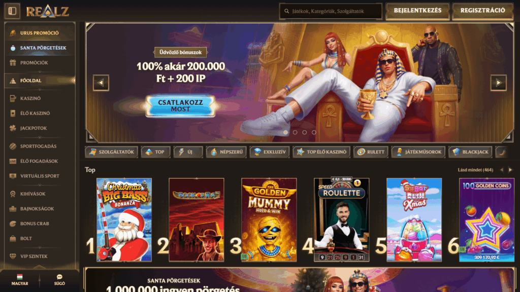 Mielőtt bármilyen sportfogadási oldalt tesztelek, mindig a tényekkel kezdem. Engem a licenc, az üzemeltető, a játékfunkciók és a mobilra való optimalizáltság érdekel leginkább – ezek mondanak el sokat egy új márkáról. A Realz 2025-ben indult, és egy olyan többfunkciós játékplatformot kínál, ahol a sportfogadás, a nyerőgépek és a kriptós megoldások egy helyen érhetők el. A dizájn kifejezetten egy luxushangulatú élményt sugall: arany színek, jól öltözött karakterek és látványos élő játékok dominálnak.